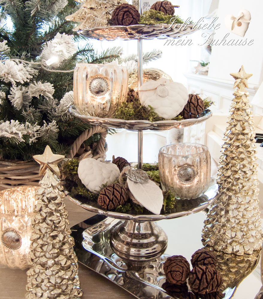 Zum Samichlaustag zeige ich Ihnen heute, wie Sie eine stimmungsvolle Weihnachts-Etagere dekorieren. Die silbrige Etagere ist von Lene Bjerre aus der Precious Collection. Weitere Etageren finden Sie hier, und hier. Eine Etagere ist immer etwas Besonderes und wirkt sehr festlich. Ihre Dekorationsmöglichkeiten sind unendlich. Stellen Sie die Etagere auf das Tablett large, aus der Zilina …