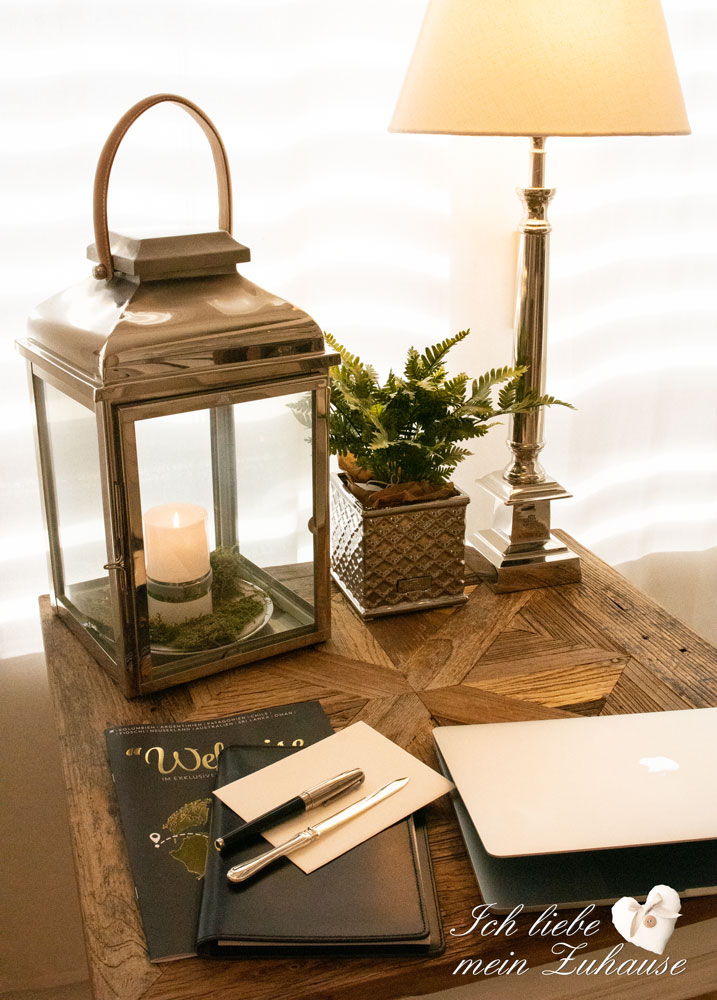 Schon ein kleiner Arbeitsplatz reicht aus, um ein gemütliches Homeoffice zu gestalten. Zum Beispiel eine separate Ecke, an einem Fenster wie bei mir, oder an einer Wand, mit einem hübschen Tisch, einem bequemen Stuhl und schönen Accessoires. So sorgen Sie für einen stimmungsvollen Arbeitsplatz, an dem Arbeiten Freude und Spass macht.