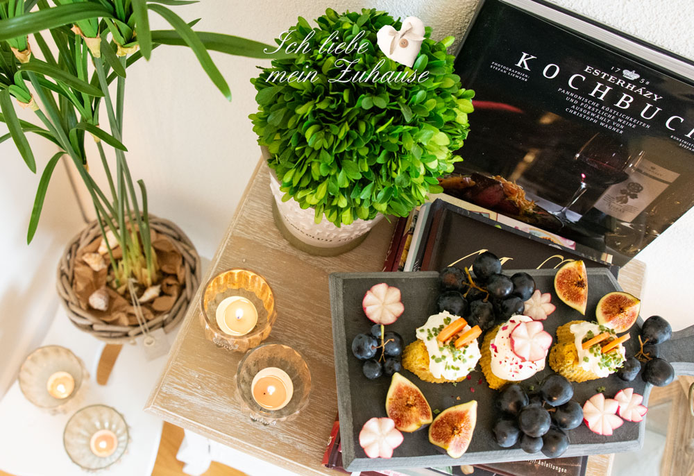 Heute machen wir es uns Zuhause gemütlich und kochen etwas Feines. Nach dem feinen Essen kuscheln wir uns auf dem Sofa gemütlich in einen Fellplaid, erzählen uns gegenseitig unsere Erlebnisse und relaxen bei romantischem Kerzenlicht. Das wie echt aussehende Gras und das Papyrus-Gras von Lene Bjerre, aus der Flora Collection, verbreiten eine stimmungsvolle Seaside-Inspiration zum Wohlfühlen und Geniessen. Es ist eine einfache Deko und wirkt durch ihre Schlichtheit so relaxt. Siehe auch hier.