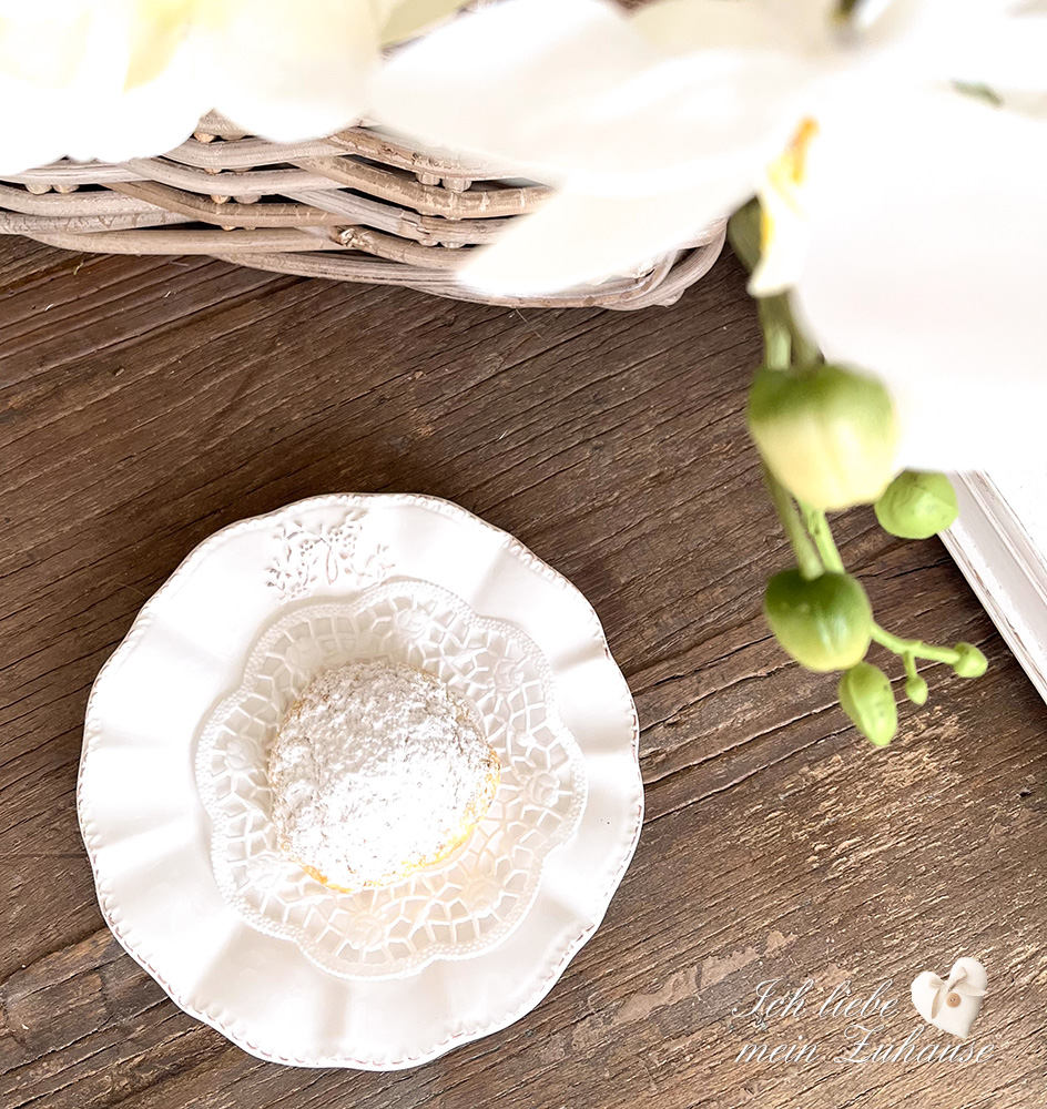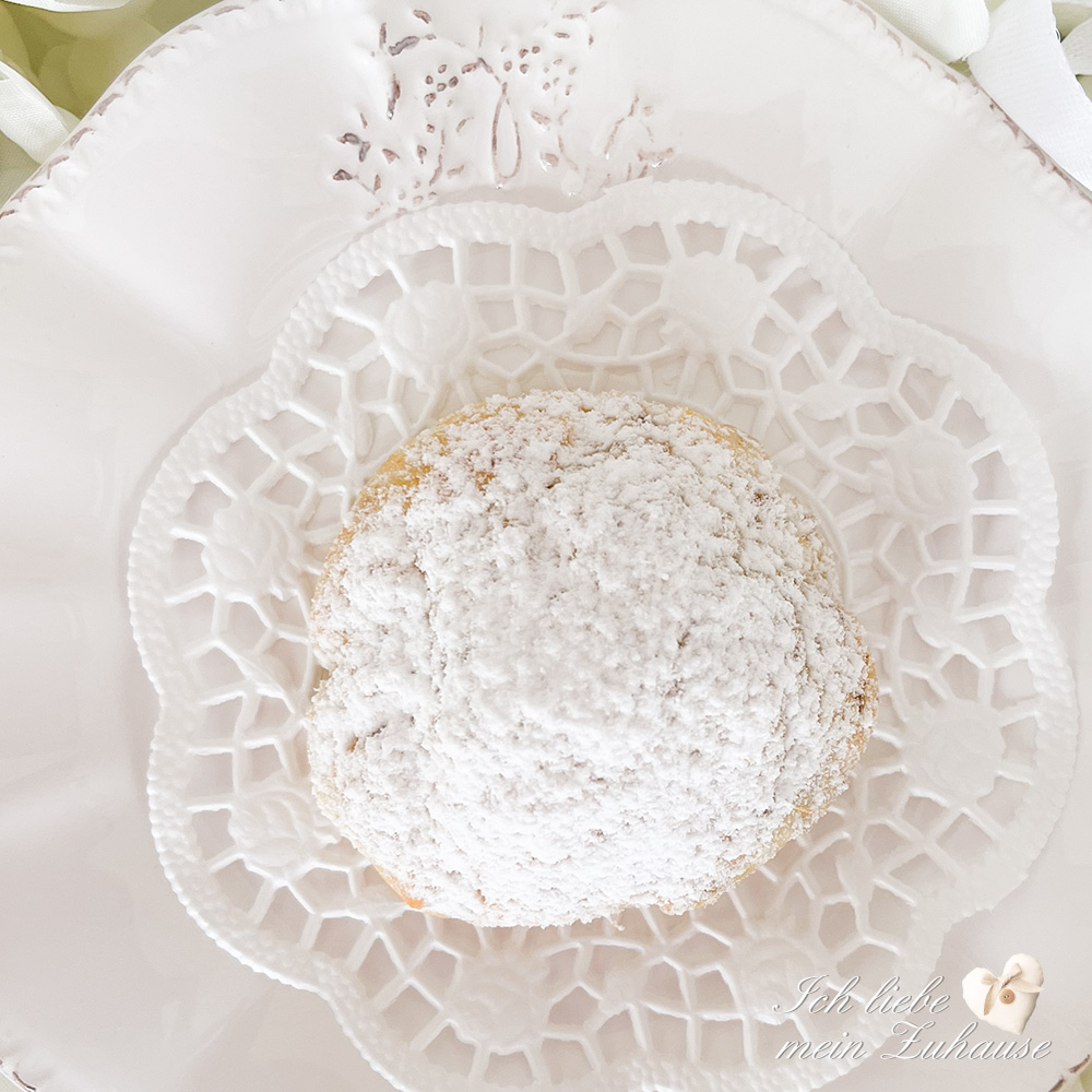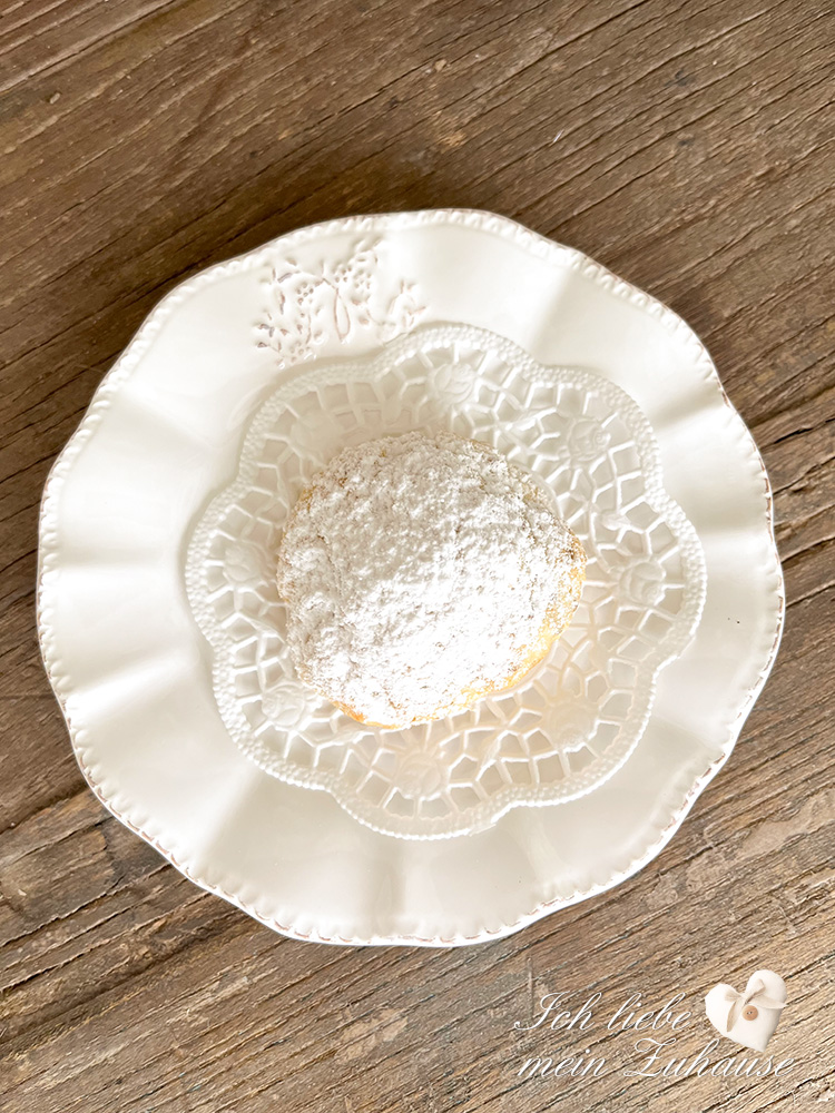 Bei 180° Umluft ca. 13 Min. in der Mitte des Backofens backen. Auskühlen lassen und nach Belieben mit Puderzucker bestäuben.
