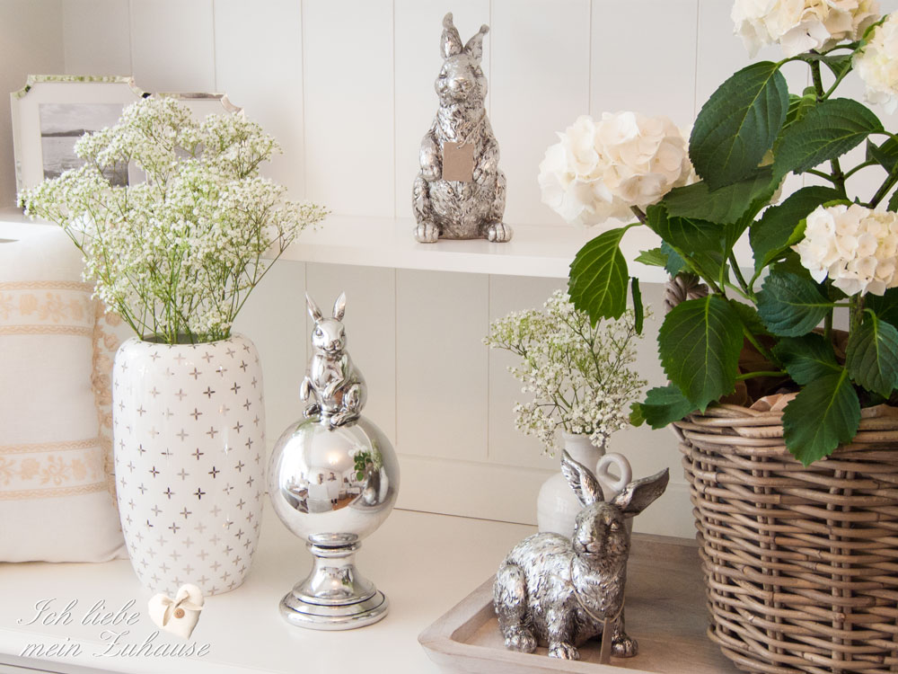 Frühlingsgefühle mit Silberhasen dekorieren gibt es bei „Ich liebe mein Zuhause“. Alles zum Wohlfühlen und Geniessen.