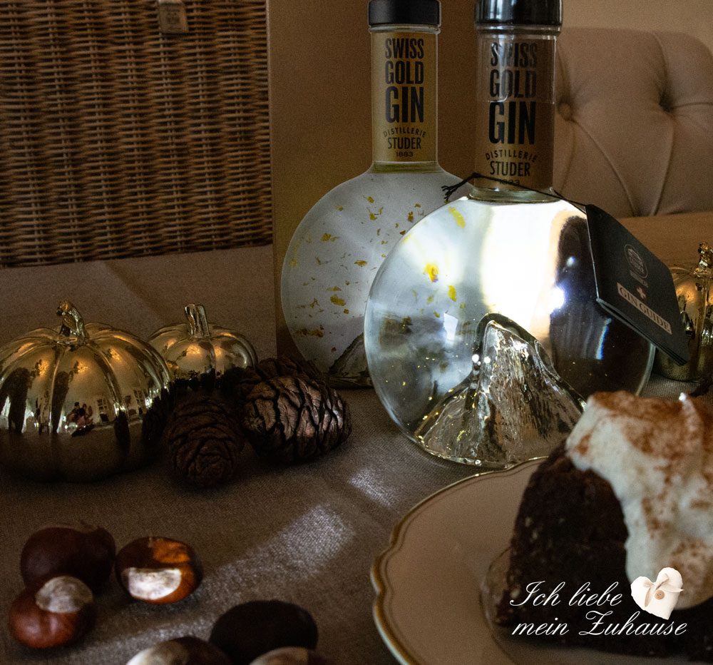 Machen Sie es sich Zuhause gemütlich und geniessen Sie den kuscheligen Herbst-Abend mit einem feinen Dessert. Der exklusive Gin der Distillerie Studer ist nicht nur ein Geschmackserlebnis, sondern beeindruckt auch mit seinen echten Goldflitter in der imposanten Flasche mit dem berühmten Matterhorn.