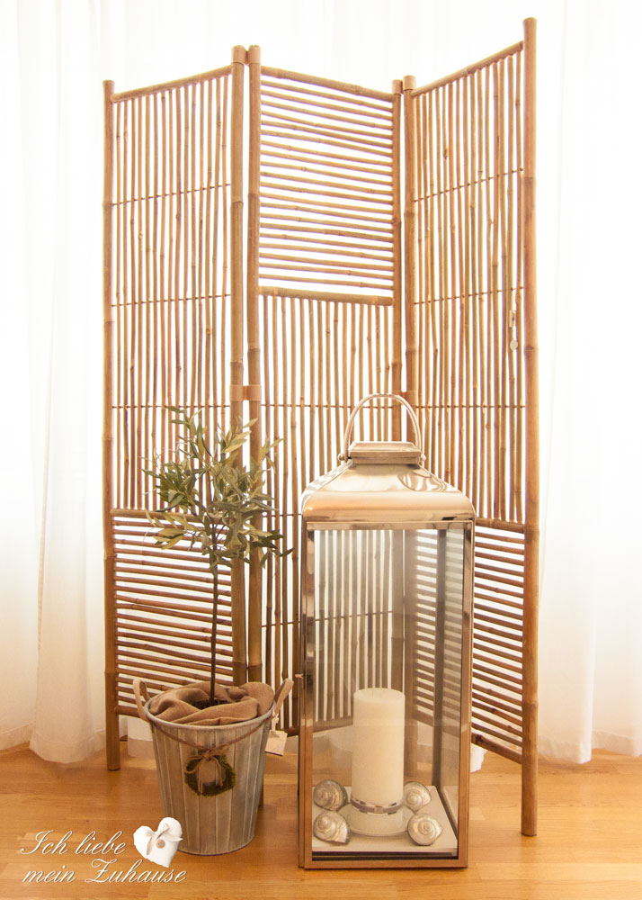 Jetzt kommen wir zum luxuriösen Give away und Spezialangebot: Beim Kauf von 2 grossen Laternen aus der Fiona Collection von Lene Bjerre, erhalten Sie gratis den Bambus-Paravent dazu. Er ist aus der Mandisa Collection von Lene Bjerre, im Wert von CHF 269.-