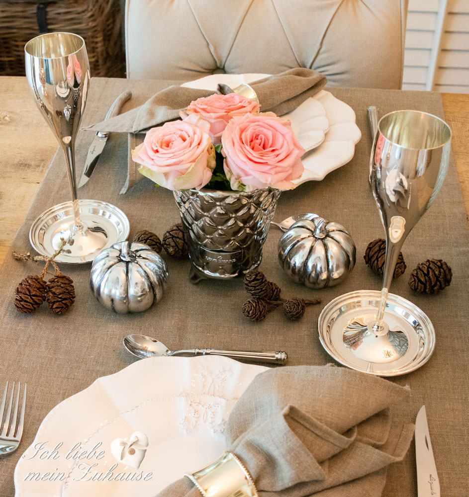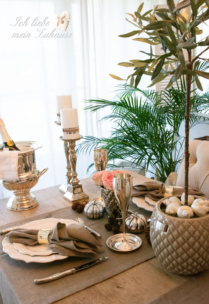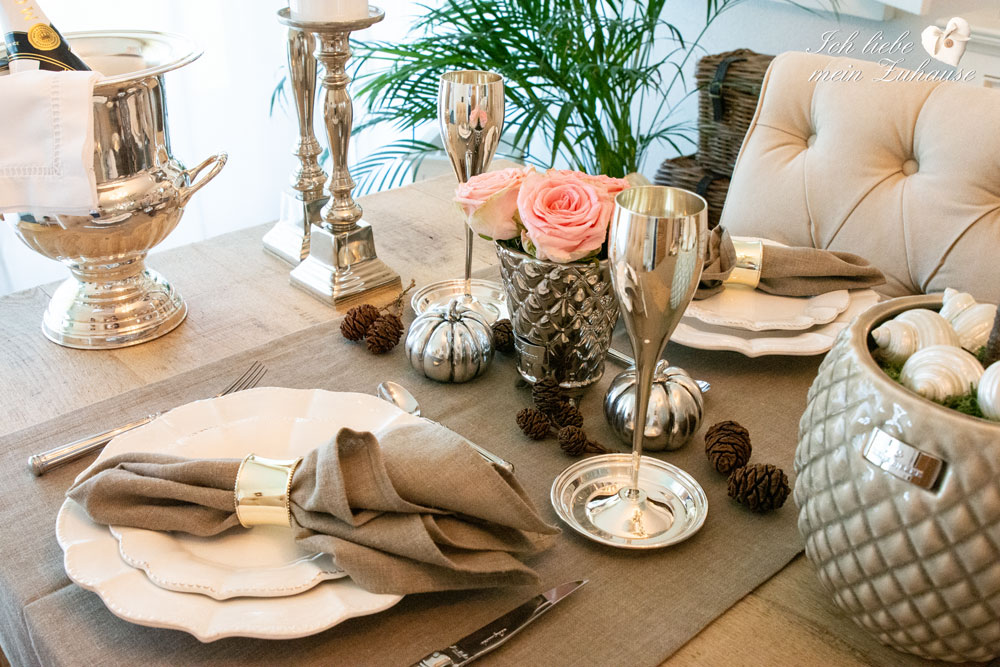 Die Tischdekoration mit edlen Kerzenständern von Lene Bjerre, hier und hier, ergänzen und wer lieber möchte verwendet einfach weisse Tischläufer.