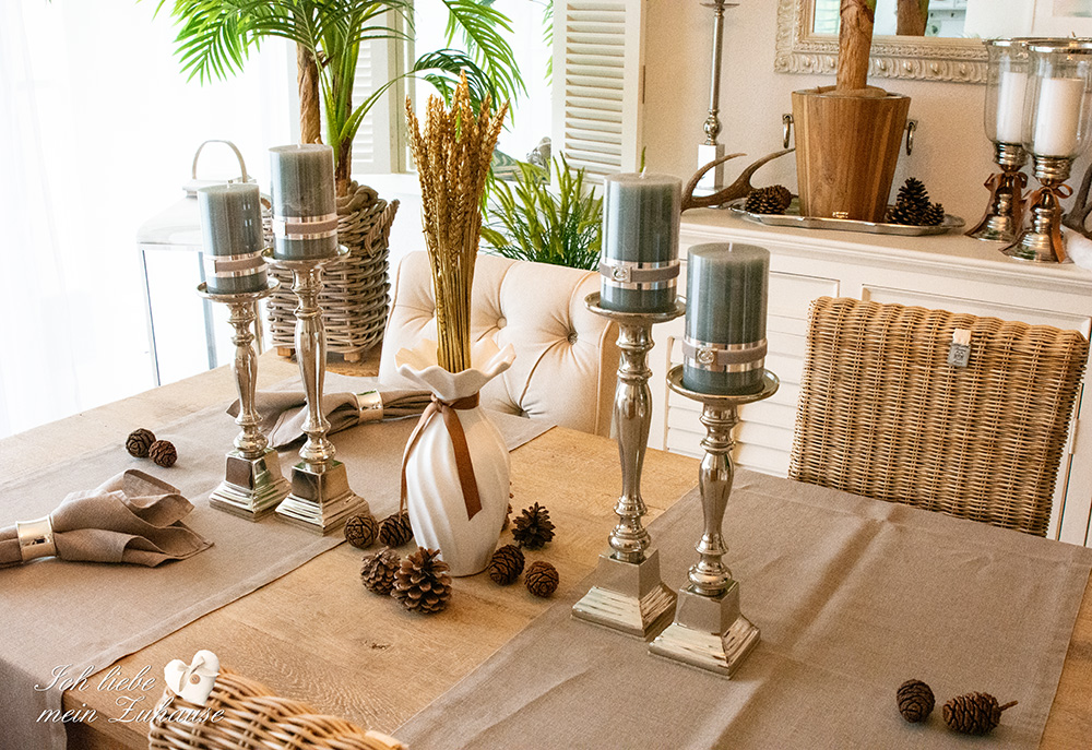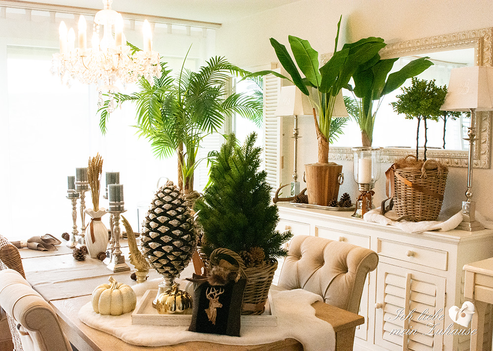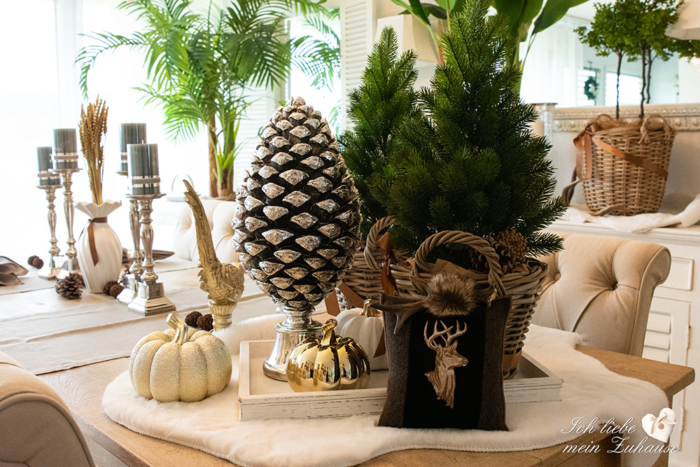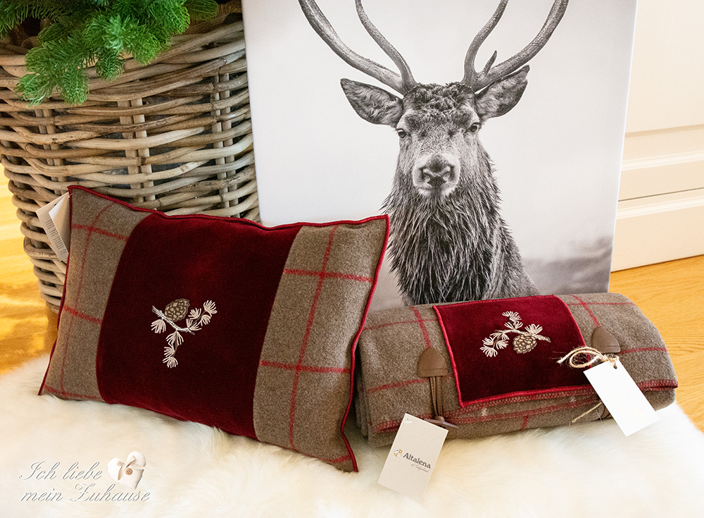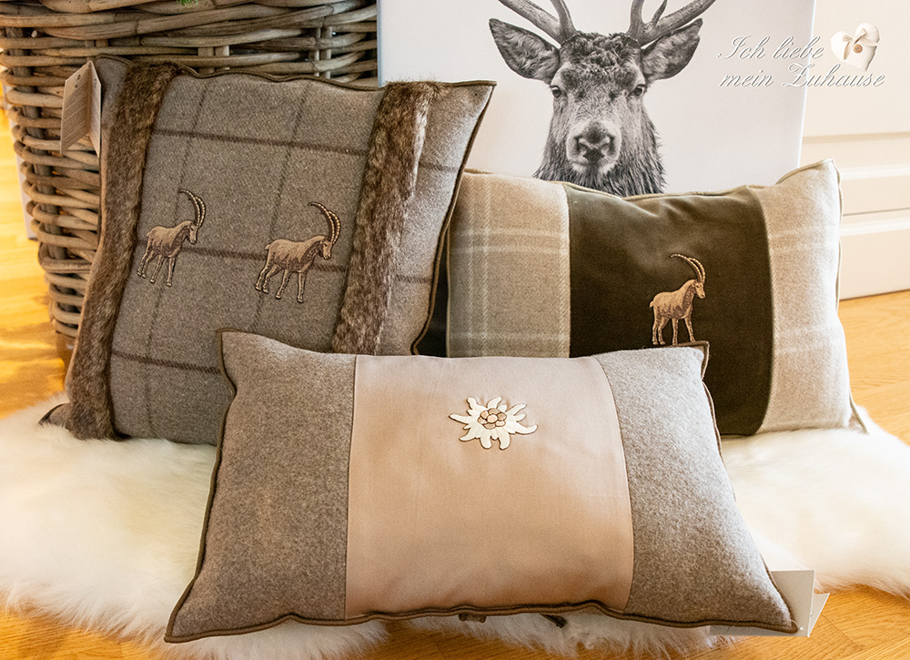 Lassen Sie sich verwöhnen von traumhaft schönen Accessoires und geniessen Sie den Herbstzauber mit Ich liebe mein Zuhause. Bringen Sie den goldenen Herbst in ihr Zuhause, mit Kissen im Chaletstil von Altalena, Vasen und edlen Kerzenständern von Lene Bjerre, hier und hier, grossen Zapfen, Fasanen und noch vieles mehr.