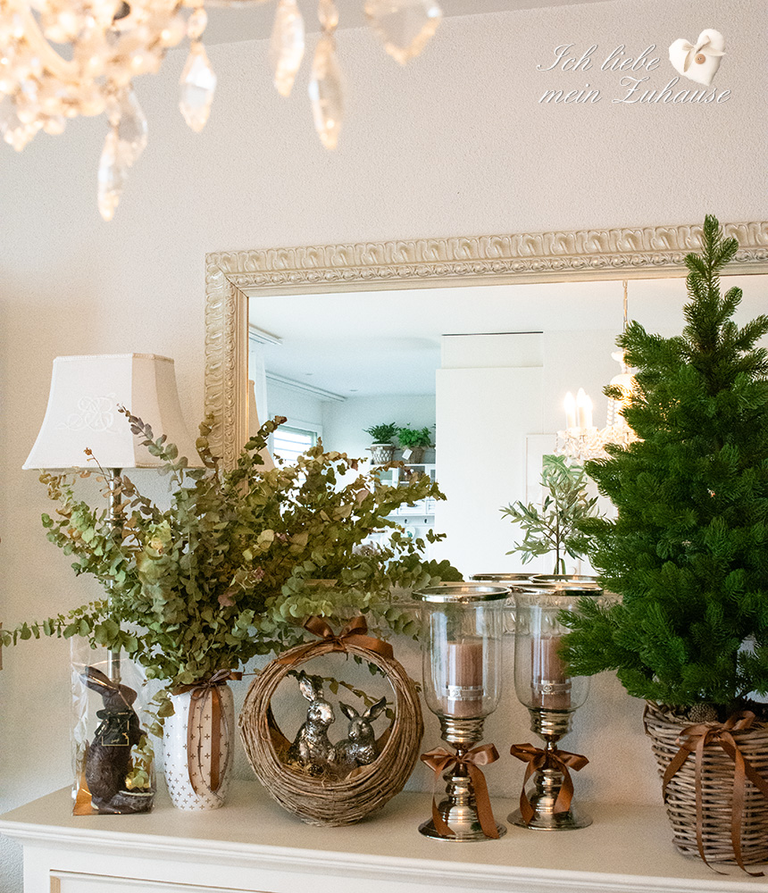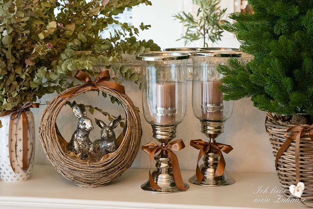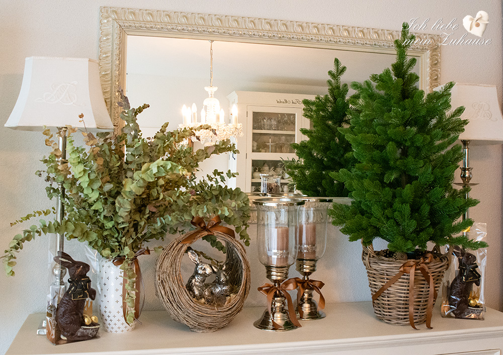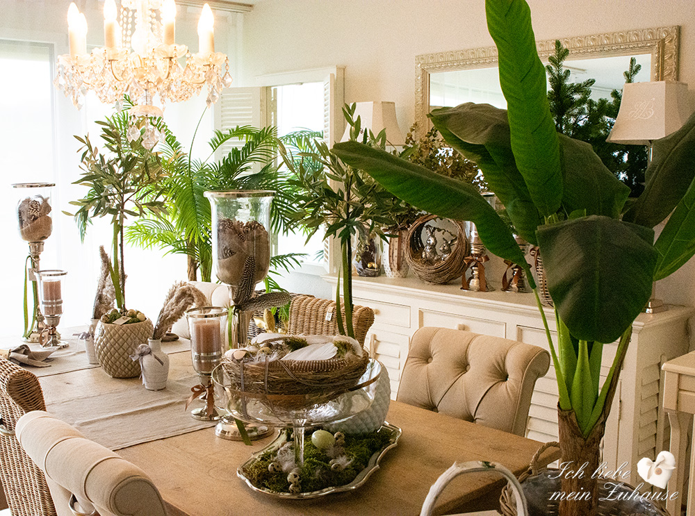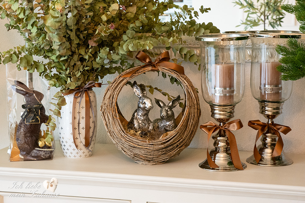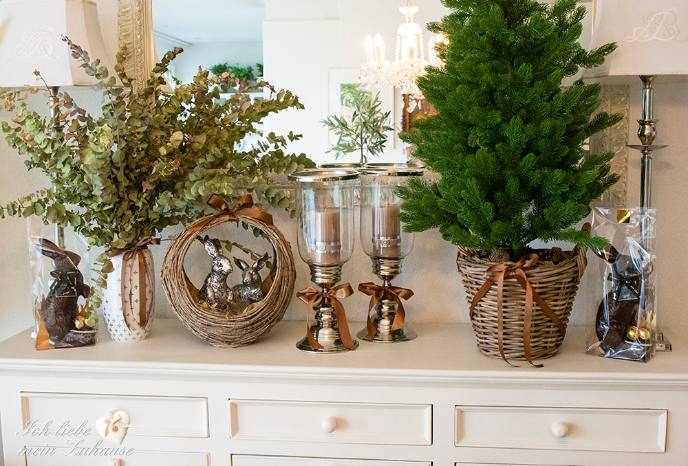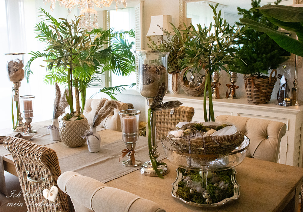 Mitten im Frühling hat es wieder geschneit und die weisse Pracht bedeckt die Landschaft, wie frisch mit Puderzucker bestäubt. Dies hat mich veranlasst, für Sie als Inspiration, nochmals eine liebevolle Osterdeko zu gestalten. Mit den weichen Erdtönen, den gedeckten Farben und den grünen Pflanzen, ist die Osterdekoration so richtig gemütlich und kuschelig geworden.