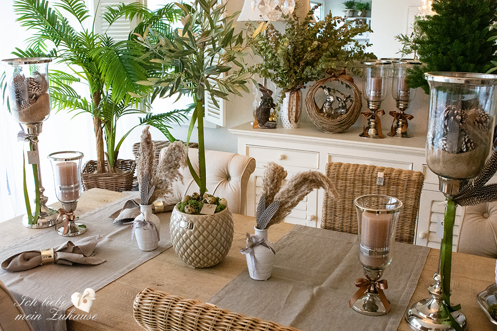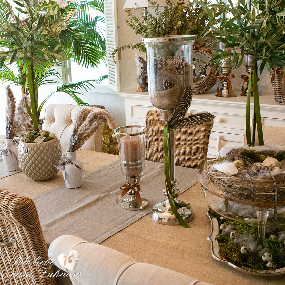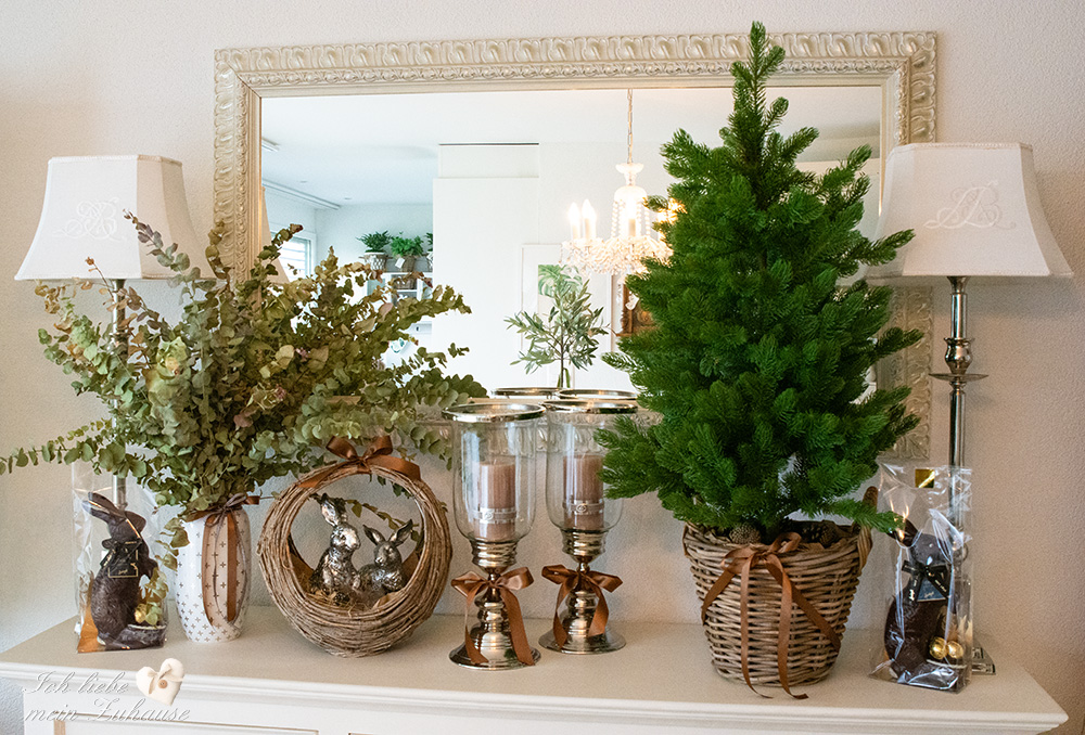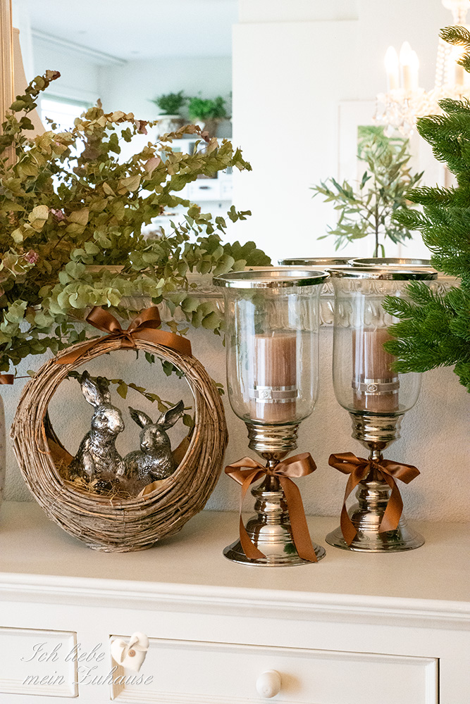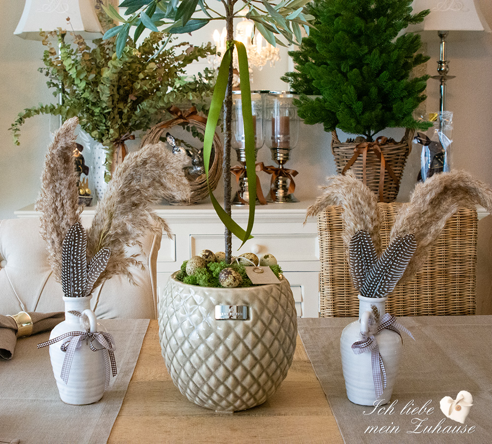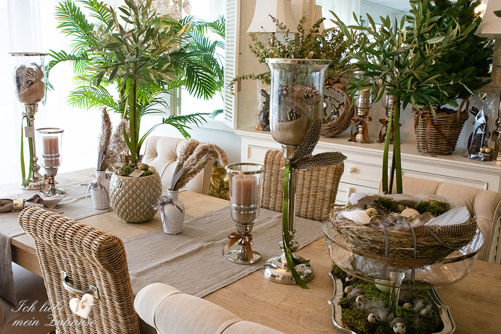 Mitten im Frühling hat es wieder geschneit und die weisse Pracht bedeckt die Landschaft, wie frisch mit Puderzucker bestäubt. Dies hat mich veranlasst, für Sie als Inspiration, nochmals eine liebevolle Osterdeko zu gestalten. Mit den weichen Erdtönen, den gedeckten Farben und den grünen Pflanzen, ist die Osterdekoration so richtig gemütlich und kuschelig geworden.
