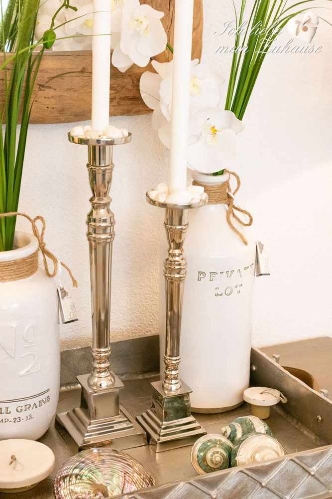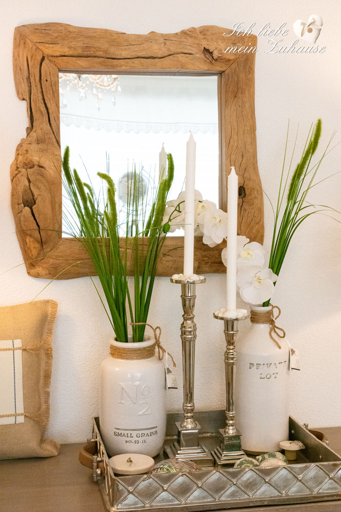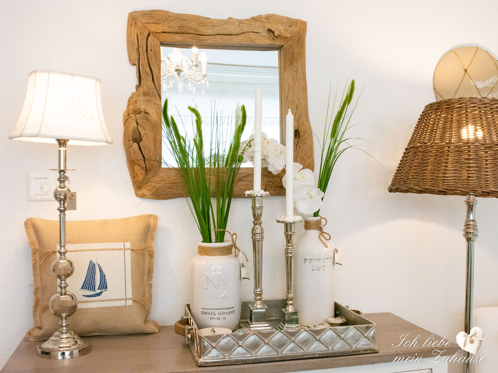 Ferienfeeling für zu Hause im lässigen Seaside-Look. Holen Sie sich die sommerliche Atmosphäre Ihrer Lieblings-Destination nach Hause. Mit dem Schwemmholz-Spiegel, einer eleganten Lampe von Lene Bjerre, Keramikvasen, hier und hier, Muscheln und Seaside-Kissen, ist Ihre Kommode im relaxten Seaside-Styling dekoriert mit sonnigem Ferienflair.
