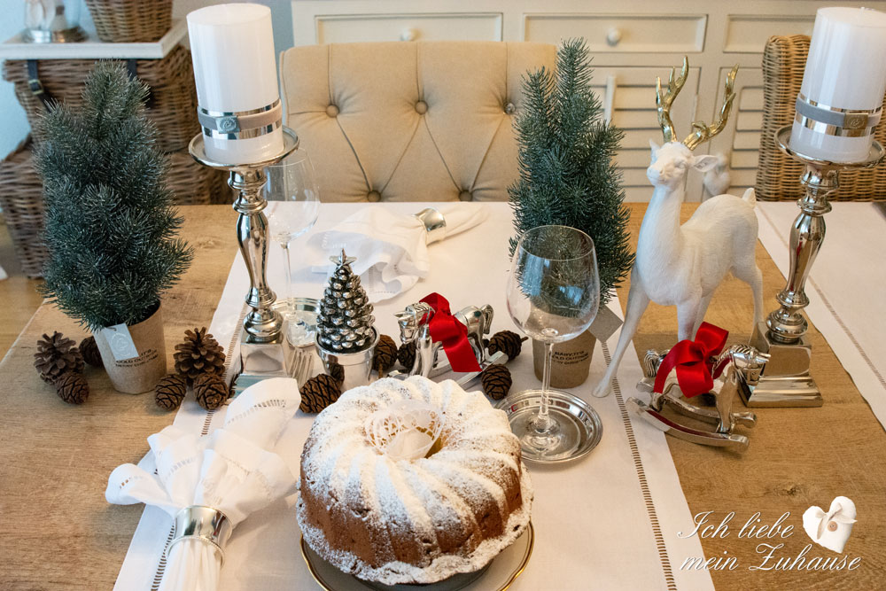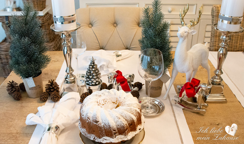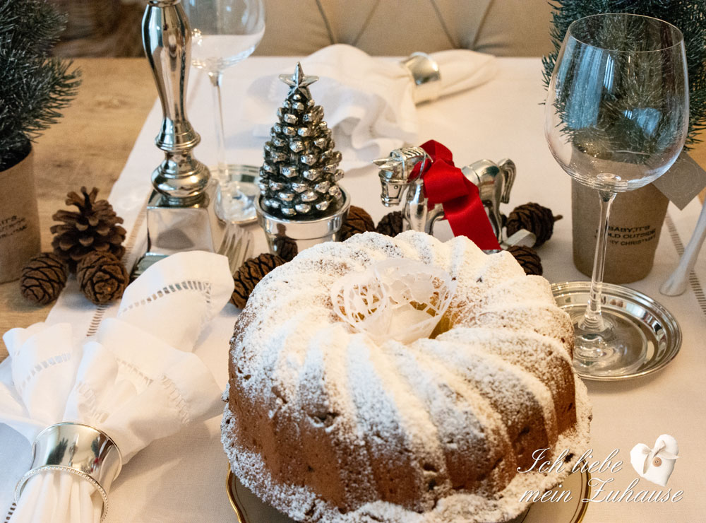 Den leckeren Gugelhopf präsentiere ich Ihnen in unserer wunderschönen Weihnachts-Tischdekoration. Lassen Sie sich von dieser genussvollen Dekoration mit den stilvollen Bildern verwöhnen und inspirieren. Viel Freude an den Fotos. Alles gibt es bei uns im Shop von „Ich liebe mein Zuhause“.