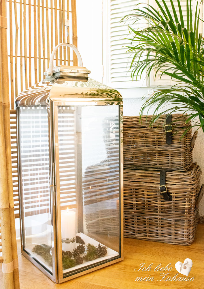 Mein Mann und ich geniessen Zuhause gerne das ganze Jahr über ein Seaside-Beach-Ferien-Feeling. Es verströmt eine relaxte und gemütliche Wohlfühl-Atmosphäre. Und die grosse Luxus-Laterne lässt sich beliebig nach Jahreszeit liebevoll umdekorieren. Der echte weisse Fellgriff verleiht der Laterne das gewisse Etwas, welches sie als ganz besonders spezielles Highlight erstrahlen lässt.