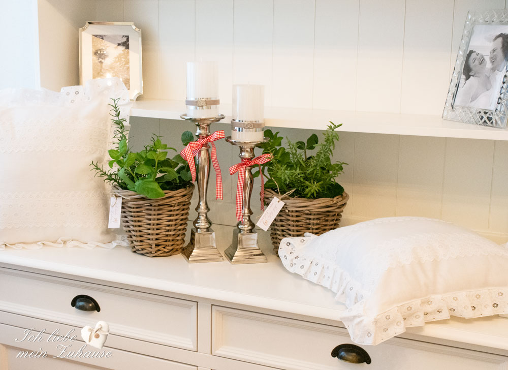 Die Kerzenständer sind von Lene Bjerre, small und large, aus der limited Christina Collection. Mit passenden Maschen oder Bänder verziert sehen sie noch hübscher aus. Lassen Sie Ihrer Fantasie freien Lauf. Die Kräuterkörbe gibt es hier, von Lene Bjerre aus der Flora Collection.