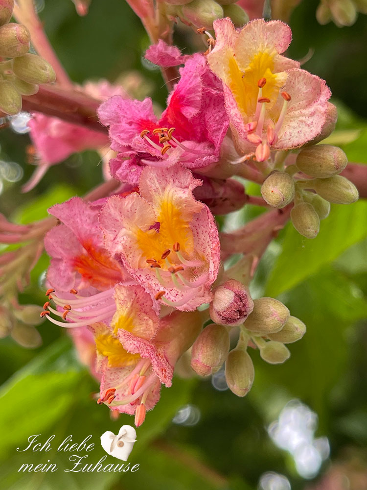 Übrigens, die Kastanienblüten auf den Bildern sind ein Traum. Das saftige Grün der Blätter mit den leuchtend satten Farben wie Magenta, Gelb, Rosa, Lila, Rot, Orange und vielen weiteren Farben der Blüten, liessen mich fasziniert und tiefenentspannt diesen Kastanienbaum betrachten.