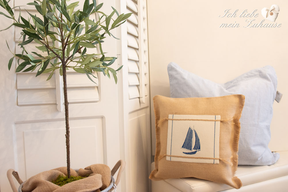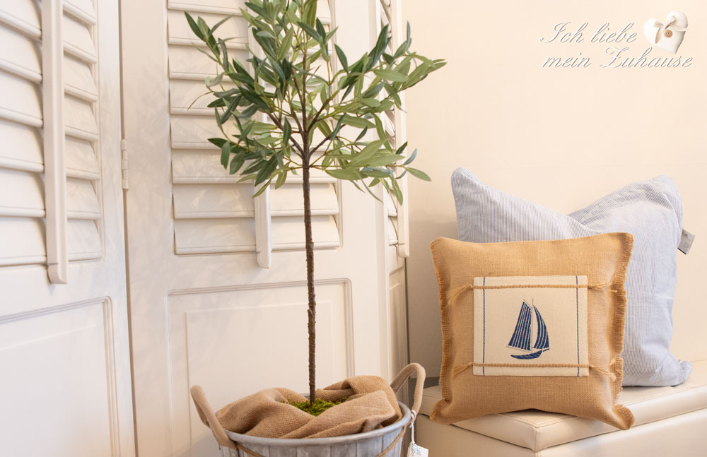 Geniessen Sie sommerleichte Kissen, wie das Jutekissen mit dem Segelschiff aus unserem Atelier, Olivenbäume und vieles mehr von Lene Bjerre, damit Sie Ihr Ferienfeeling nach Ihren persönlichen Wünschen Zuhause haben.
