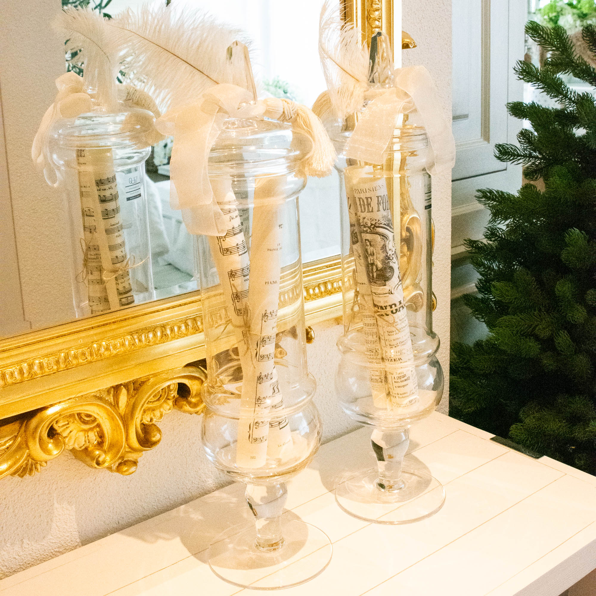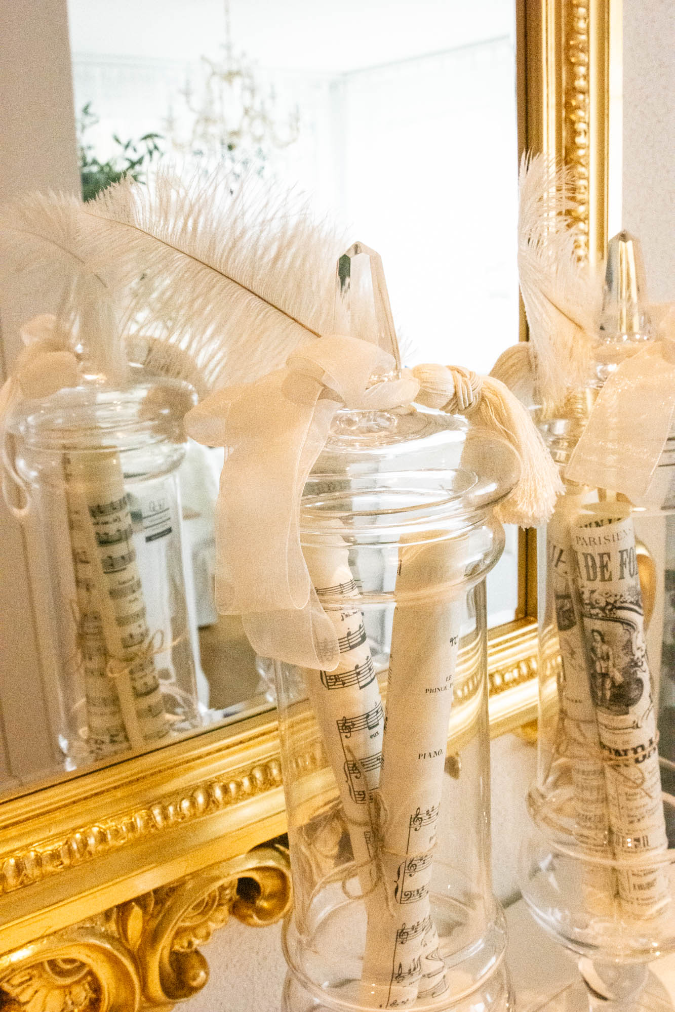 • 2 grosse Gläser mit edlem Deckel, inkl. Masche, Feder, etc.