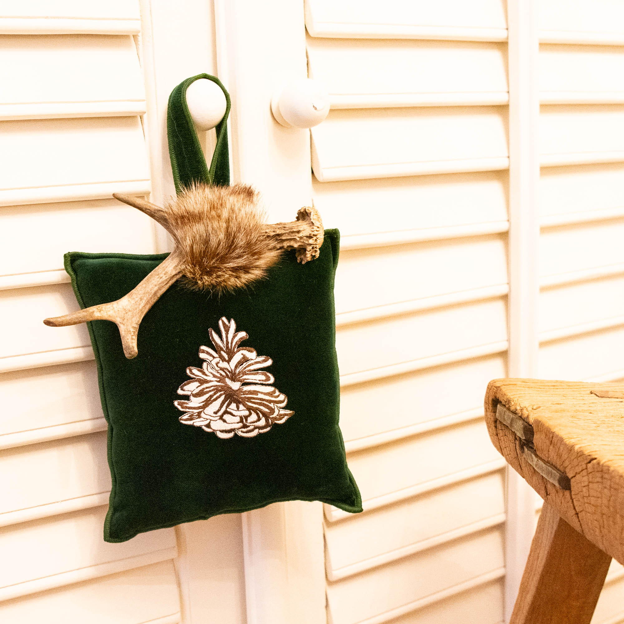 Altalena of Switzerland – Duftkissen Chalet-Romantik mit Zapfen und Geweih/Smaragdgrün