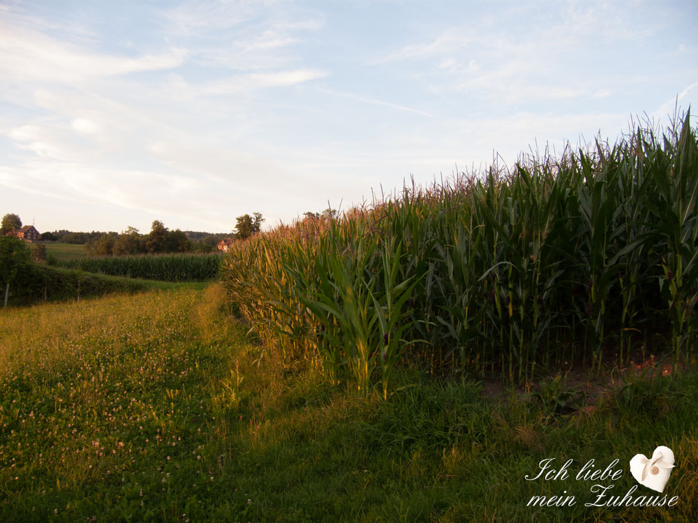 Mit meinem Mann habe ich an einem schönen Sommerabend einen romantischen Spaziergang gemacht. Die Sonne tauchte die Landschaft in wunderbar warme Farben und wir freuten uns an diesem faszinierenden Lichtspiel der Natur. Vorbei an Wiesen und Felder spazierten wir gemütlich zum Waldrand und erblickten dort ein grasendes Reh. In aller Ruhe schaute es uns an, bis es schliesslich im Wald verschwand.