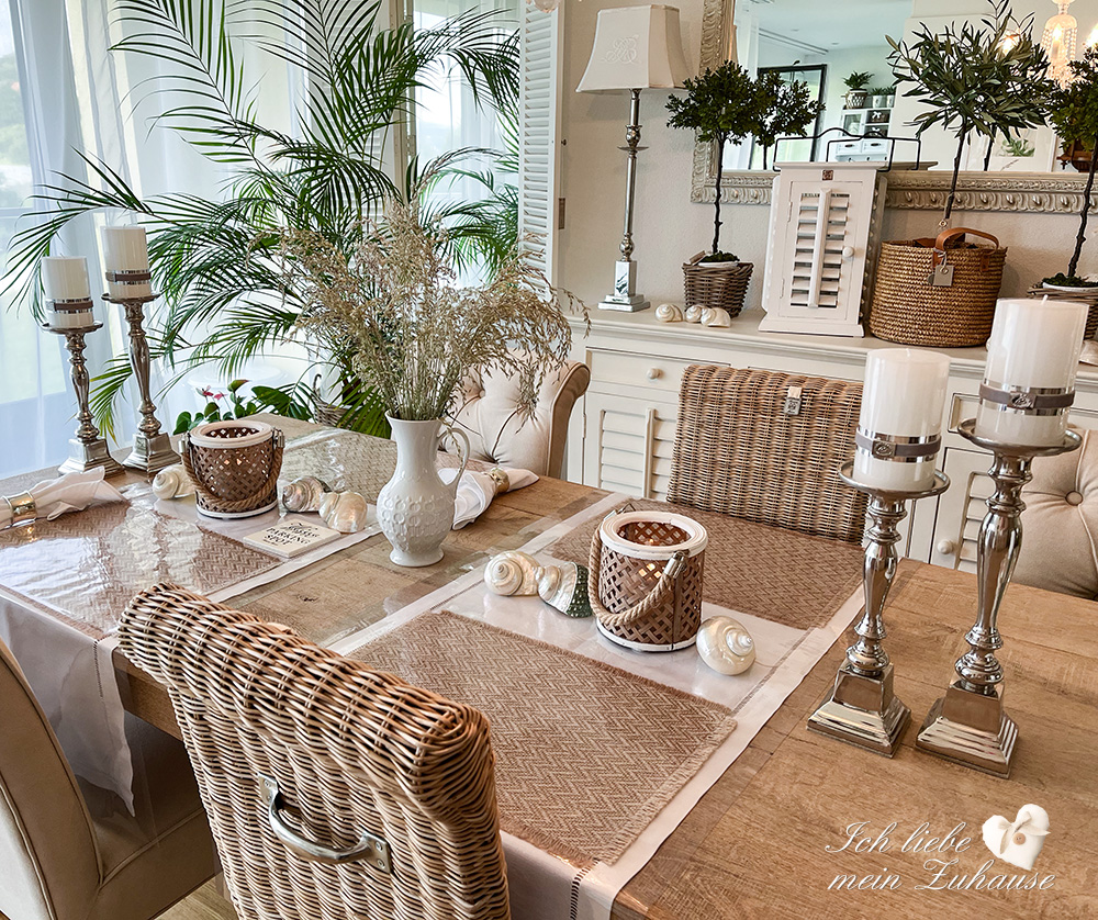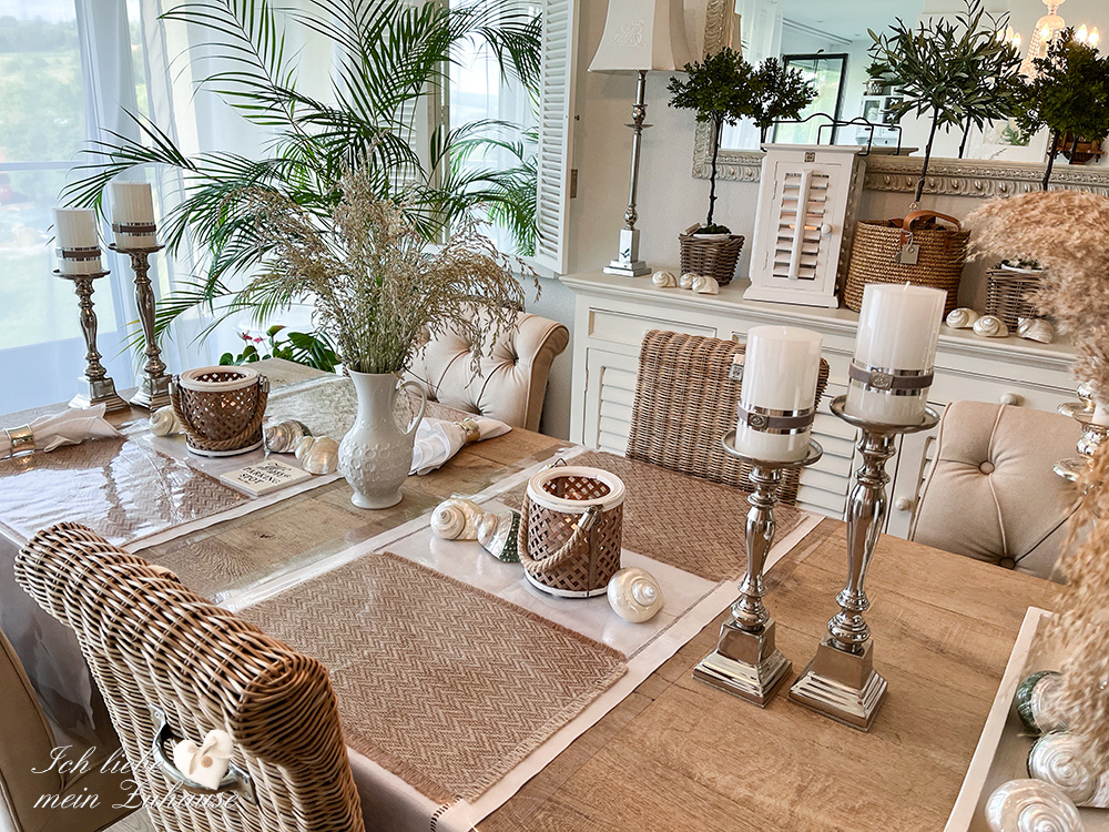 Diese Tischdekoration lässt direkt eintauchen in Strandfeeling zum Wohlfühlen und Geniessen.