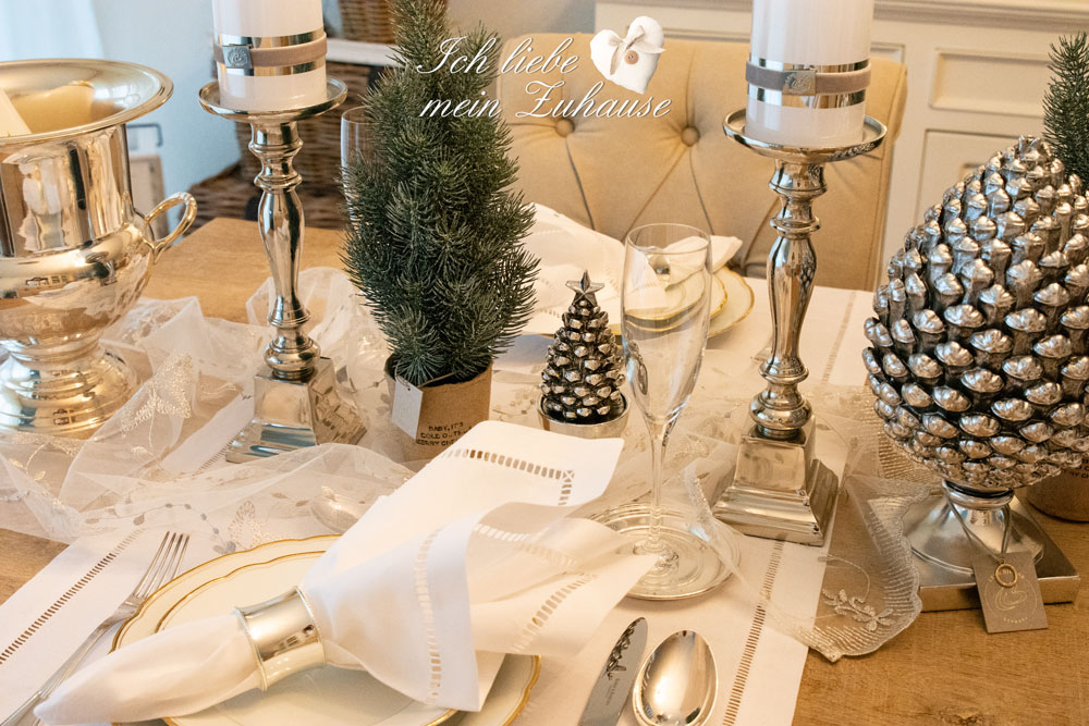 Vieles mehr, wie diverse Bäumchen und silbrige Zapfen, finden Sie speziell in unserer Weihnachts-Kategorie. Lassen Sie sich inspirieren von meinen vielen schönen Bildern, die ich ganz speziell für Sie gemacht habe. Die traumhafte Tischdekoration ist in stilvoller klassischer Eleganz dekoriert. Mit hochwertigen Materialien, zeitlos, klassisch und edel. Schaffen auch Sie ein Zuhause voller Liebe, Wärme und Harmonie.