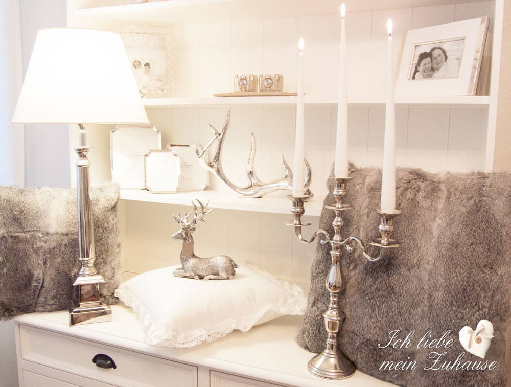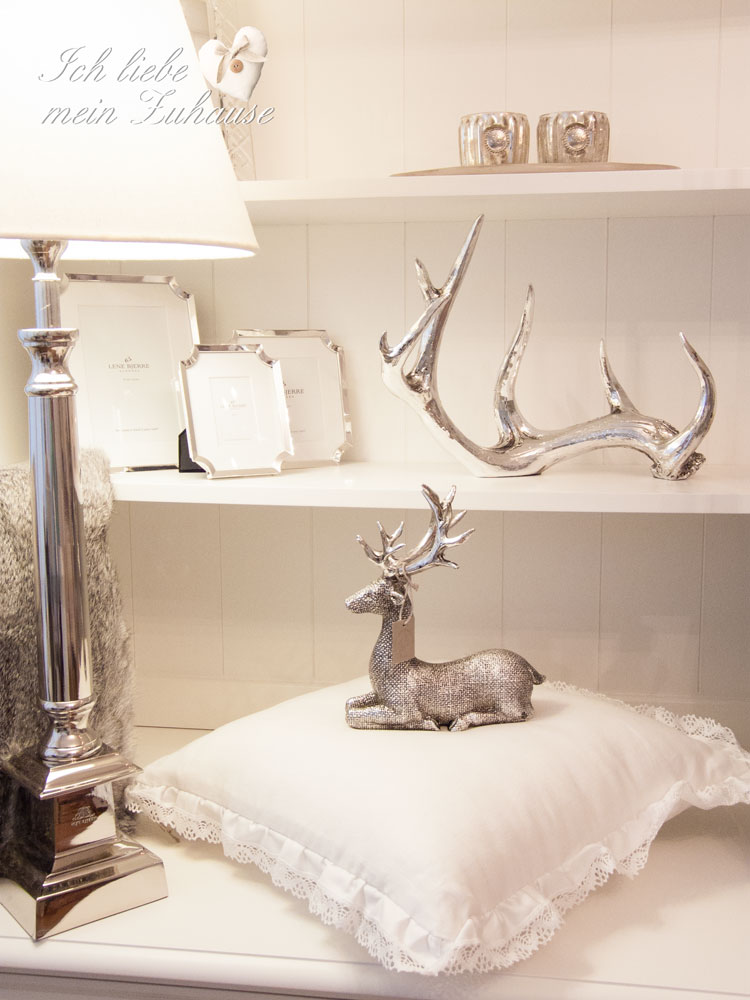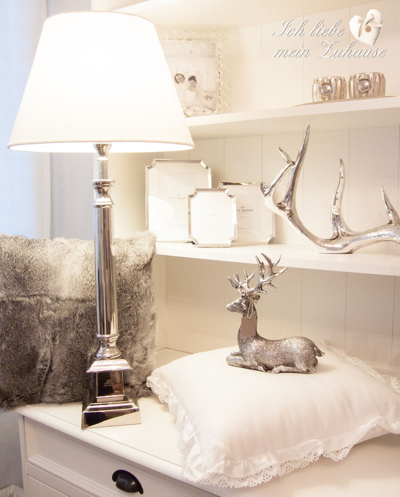 Das mystische, silbrige Hirschgeweih aus der Serafina Collection von Lene Bjerre gibt es in small und large und passt perfekt zur Winter-Impression. Im Winter wird es meist schon früh dunkel und da schätze ich es besonders, wenn ich verschiedene Lampen habe, die nicht nur schön und luxuriös aussehen, sondern auch eine gemütliche Stimmung ins Interieur zaubern. Auf dem Bild sehen Sie die edle Tischlampe aus der Ella Lighting Collection von Lene Bjerre, mit dem silber Fuss und dem Leinen-Schirm.