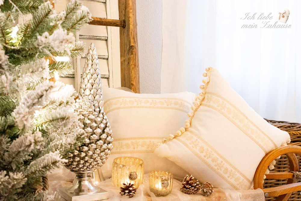 Winterzeit ist Kuschelzeit und ich wünsche Ihnen ein wundervolles Winter-Wochenende zum Wohlfühlen und Geniessen. Die romantischen weissen Kissen mit den Pompons und den Rosenmotiven gibt es hier. Alles von Edzard, Lene Bjerre und mehr.
