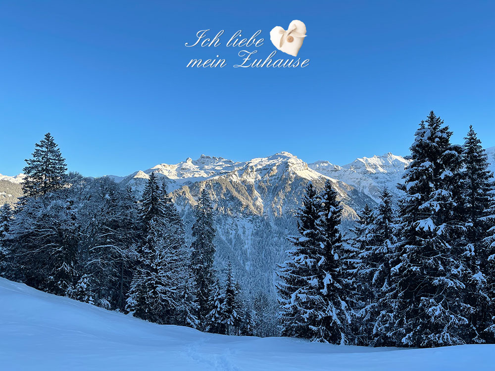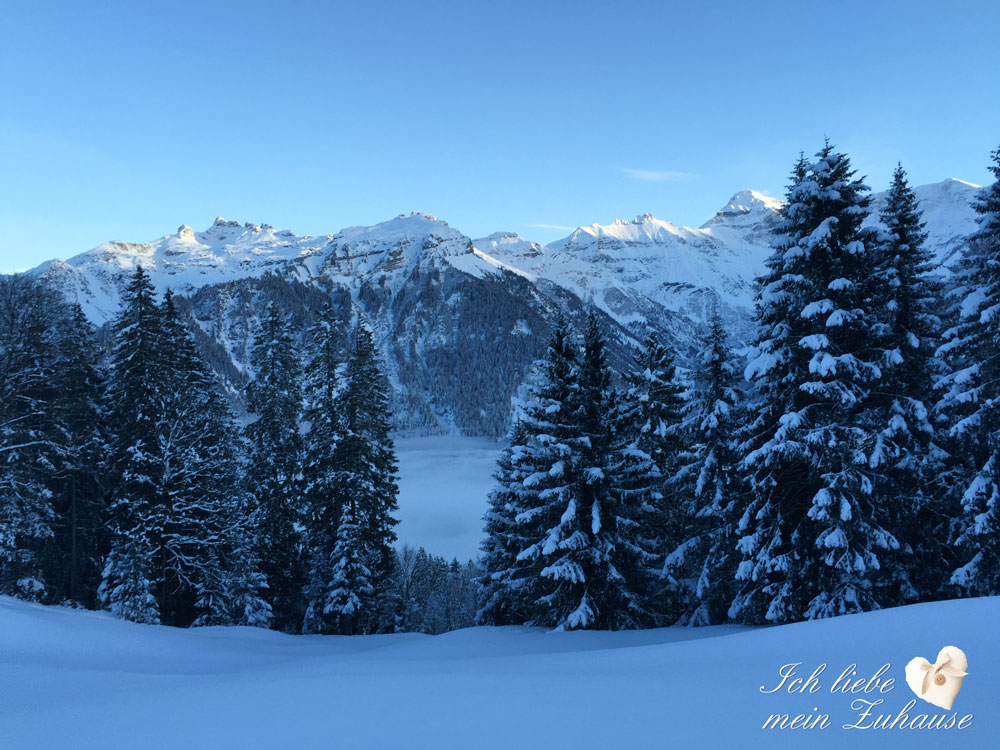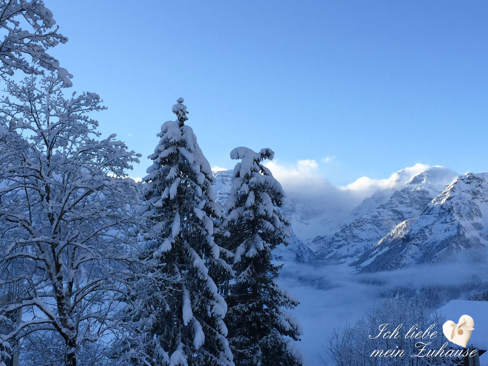 Die klirrende Kälte im traumhaft verschneiten Winterland, lädt ein es sich Zuhause so richtig kuschelig und gemütlich zu machen. Ob Zuhause vor dem knisternden Kaminfeuer oder einfach in der warmen Wohnung. Es ist herrlich, die weissen Berge zu sehen, wie wenn sie mit Puderzucker dekoriert worden wären.