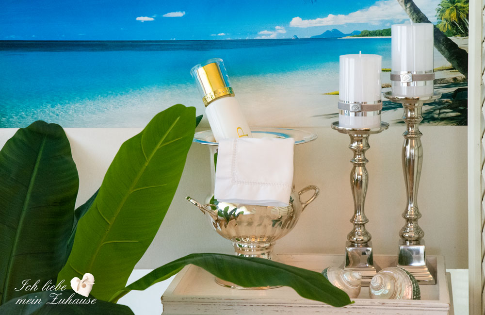 Juhui, wir lieben den Sommer und endlich ist er da. Wie schön ist es, wieder draussen zu sitzen bei herrlich warmen Temperaturen, gemütlich zusammen zu sein und miteinander ein feines Essen zu geniessen. Dekorieren Sie sommerliche Gemütlichkeit mit Eleganz und Klasse. Ein exklusiver Champagner-Kühler von Edzard ist auf jedem Tisch ein wahres Highlight. Dazu noch edle Kerzenständer stellen von Lene Bjerre und mit Muscheln den Look vervollständigen.